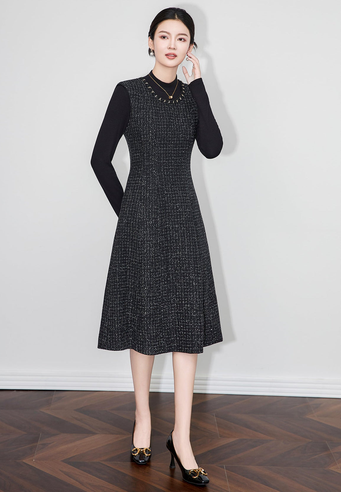 Chanel-Inspired Tweed Mermaid Dress – Elegant Slim Fit Long-Sleeve Design