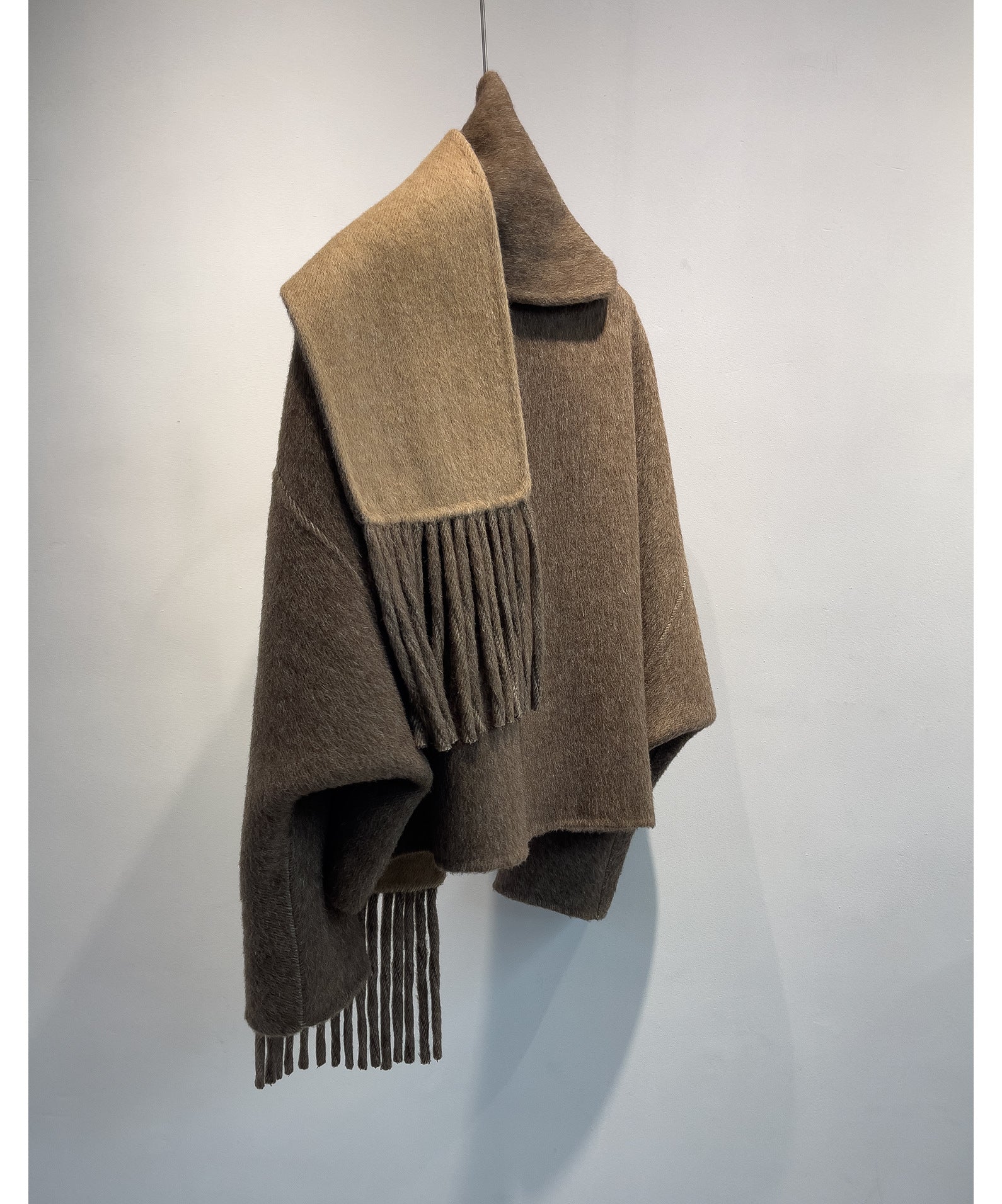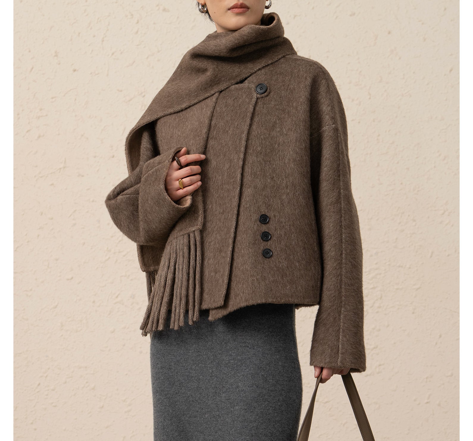 Alpaca Wool Short Double-Sided Coat with Scarf Detail
