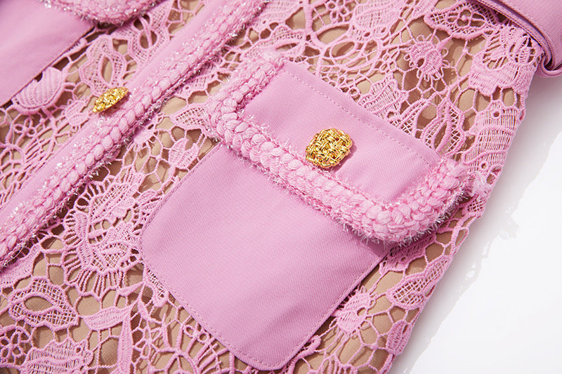 Crafted from premium lace and chiffon fabric, the dress offers a lightweight, breathable feel — ideal for warm summer days. The defined waistline and graceful midi length create a flattering silhouette that enhances natural curves. Whether for casual city outings or special occasions, this piece captures a chic, confident allure.
