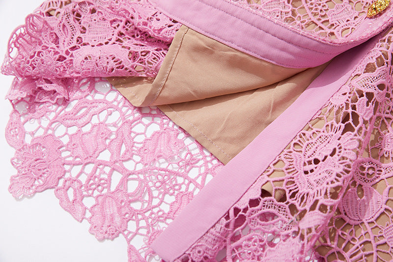 Inspired by European and American street fashion, this waterproof hollow lace midi dress exudes effortless elegance and sophistication. Featuring a square neckline, short sleeves, and a refined regular fit, it perfectly balances feminine charm with modern style.