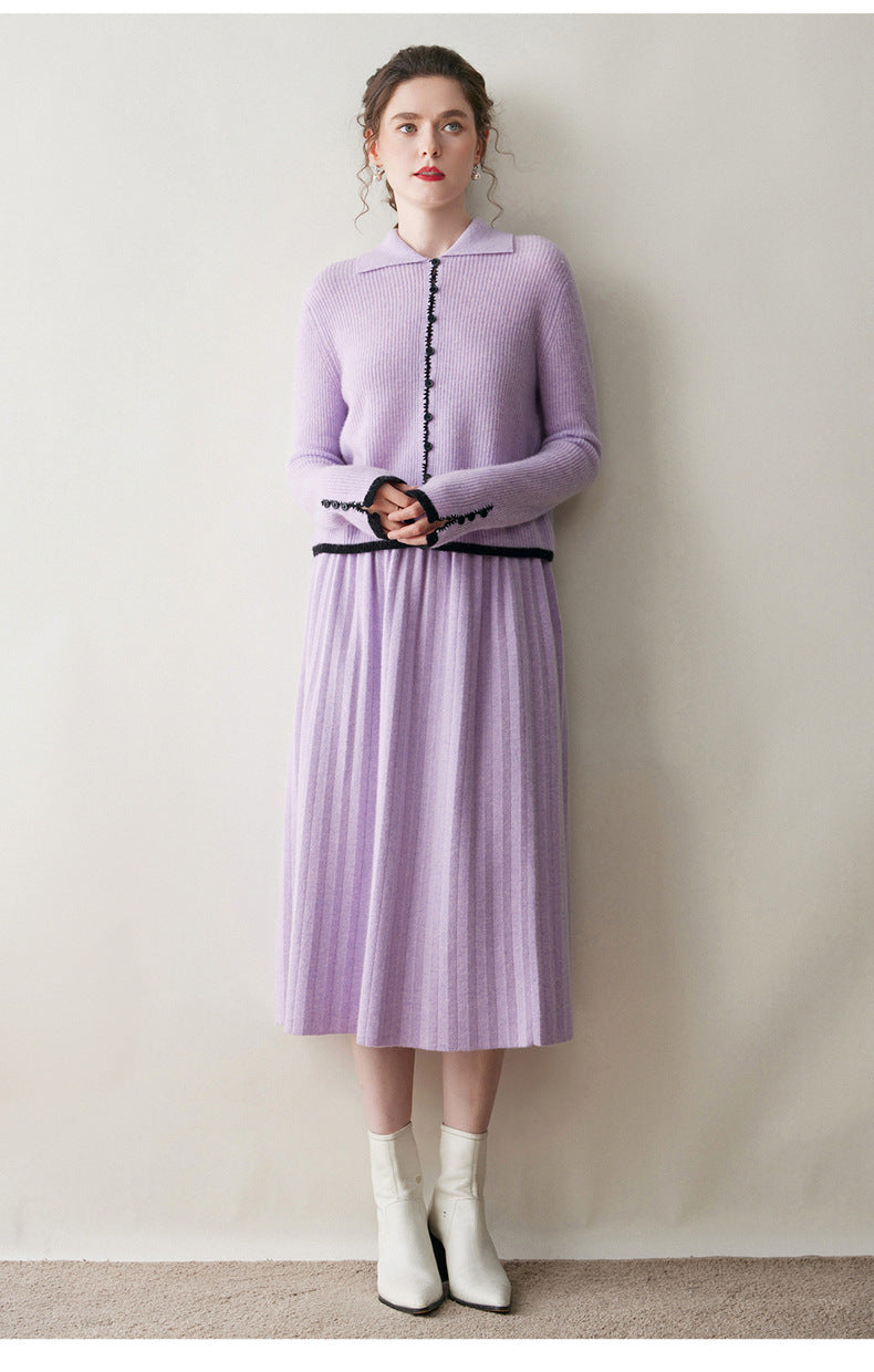 Refined sophistication meets cozy luxury in the Color-Block Cashmere Cardigan, a Chanel-inspired design that elevates your fall and winter wardrobe.