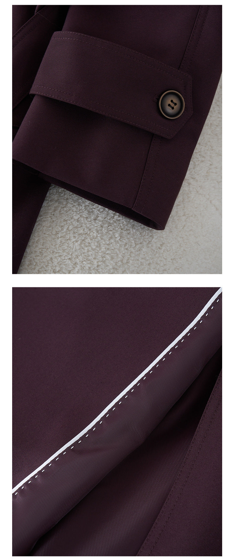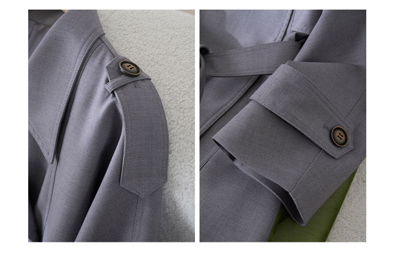 A slim belt cinches the waist for a sculpted hourglass effect, while the double-breasted front and suit-style lapel elevate the coat with traditional trench coat sophistication. Perfect for city chic, formal occasions, or fall/winter street style.